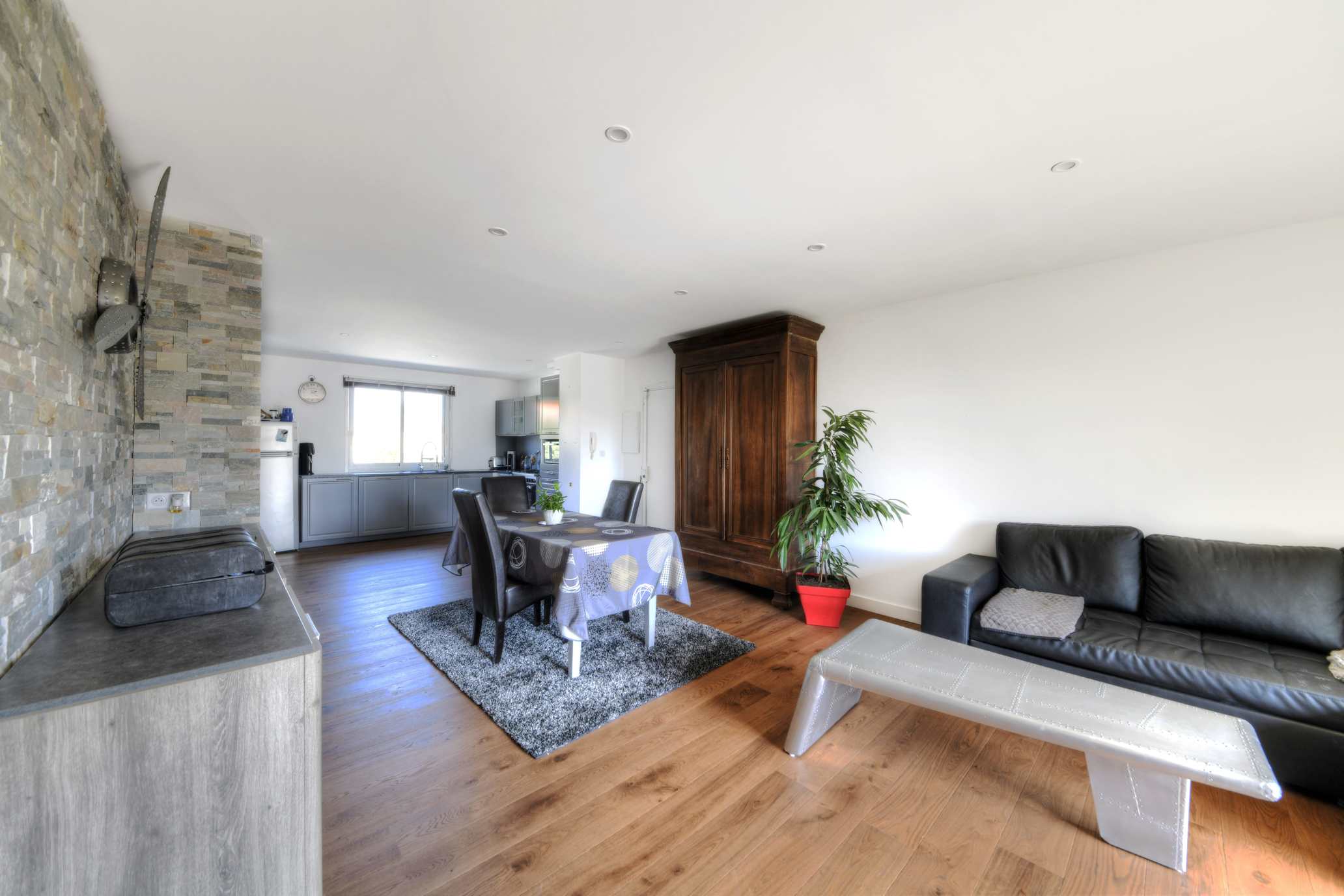 Le but de ce projet était de redonner une seconde vie à cet appartement. Nous avons cassé les cloisons pour ouvrir les espaces, nous avons posé du parquet contrecollé pour rendre le lieu plus chaleureux. Nous avons également posé au mur de la pierre de parement et nous avons changé toute la cuisine.
